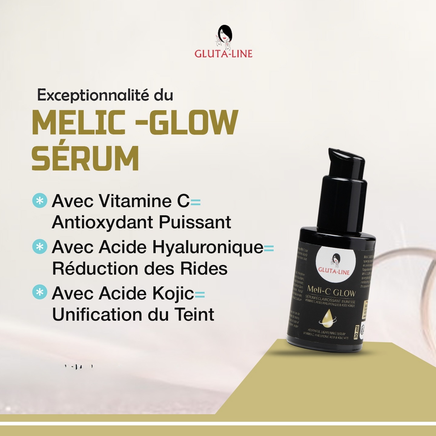 Méli-C GLOW sérum, éclaircissaant au glutathion, acide kojique et acide hyaluronique
